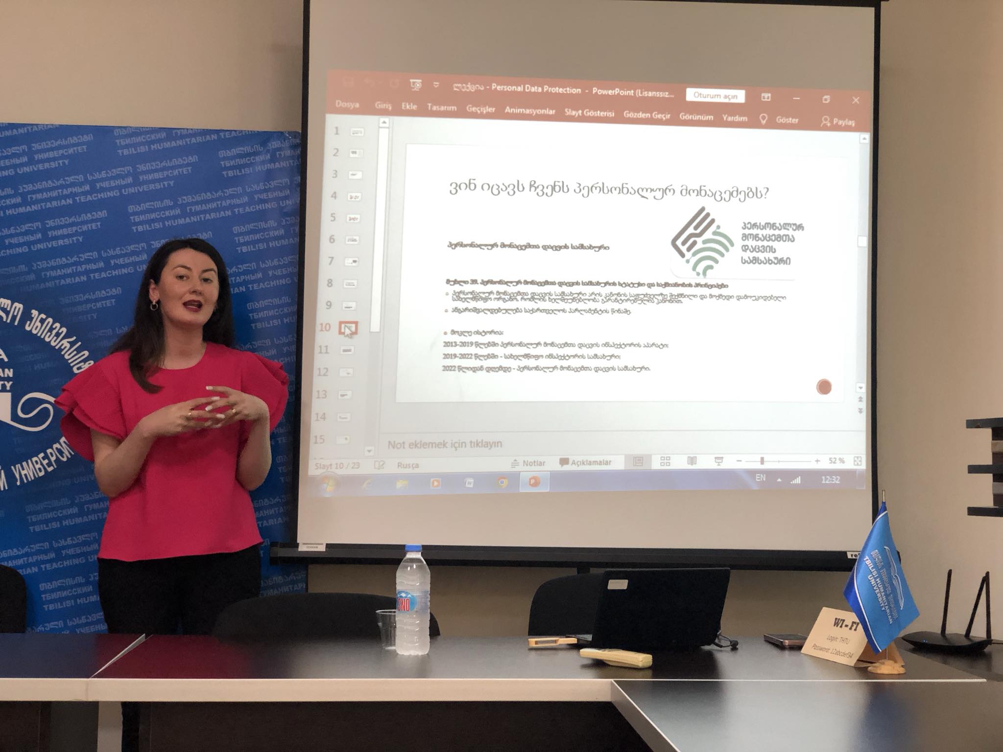 2025 წლის 3 ნოემბერს თბილისის ჰუმანიტარულ უნივერსიტეტში გაიმართა საქართველოს ფინანსთა სამინისტროს იურიდიული დეპარტამენტის უფროსი სპეციალისტის, ივანე ჯავახიშვილის სახელობის თბილისის სახელმწიფო უნივერსიტეტის დოქტორანტის თამთა კიკოლაშვილის საჯარო ლექცია თემაზე: „პერსონალური მონაცემების დაცვა საჯარო სამსახურში“.