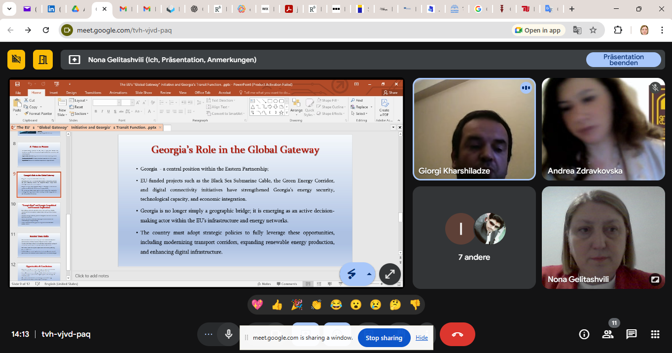 2025 წლის 14-15 ნოემბერს, ბიტოლას „წმინდა კლიმენტ ოჰრიდსკის“ უნივერსიტეტმა (ჩრდილოეთ მაკედონიის რესპუბლიკა) უმასპინძლა საერთაშორისო სამეცნიერო კონფერენციას თემაზე: „„მულტიდისციპლინური მიდგომა მდგრადი განვითარების მიზნებისადმი“. კონფერენცია ჰიბრიდულ რეჟიმში ჩატარდა. თჰუ-ს აფილირებული პროფესორი - ნონა გელიტაშვილი და აფილირებული ასოცირებული პროფესორი - გიორგი ხარშილაძე ერთ-ერთ ონლაინ პანელზე წარდგნენ მოხსენებით. მათი მოხსენების თემა იყო: „ევროკავშირის „გლობალური კარიბჭის“ ინიციატივა და საქართველოს სატრანზიტო ფუნქცია: სტრატეგია, ინვესტიციები და განვითარება“.